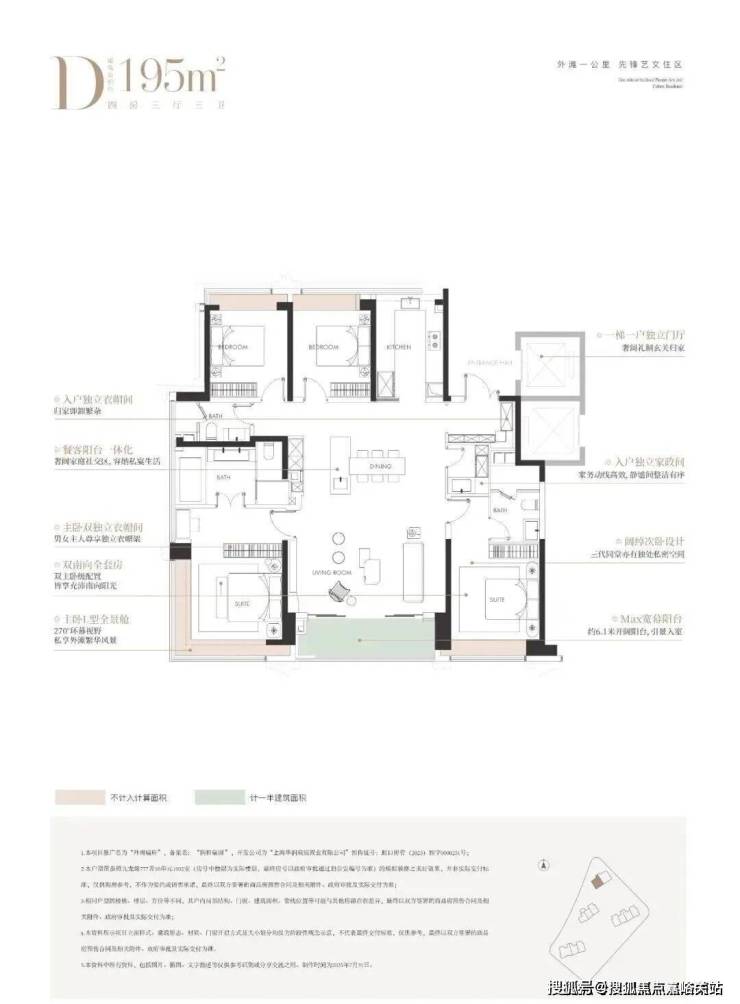 建面约161㎡的奢享四房,则是对改善需求的深刻洞察。其设计更是颠覆性的:全屋四个转角窗构建外滩天际环幕视野,三卧朝南且近乎等面宽的“真四房”设计,实现了家庭成员间的景观平权与舒适平权。酒店式四分离次卫与独立家政空间的设计,更是对生活细节的极致考量。