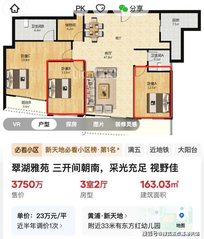 对比链家翠湖天地约163㎡户型,南向次卧套内面积分别是约13.9㎡和约12.5㎡,空间尺度完胜!越级改善的首选产品!