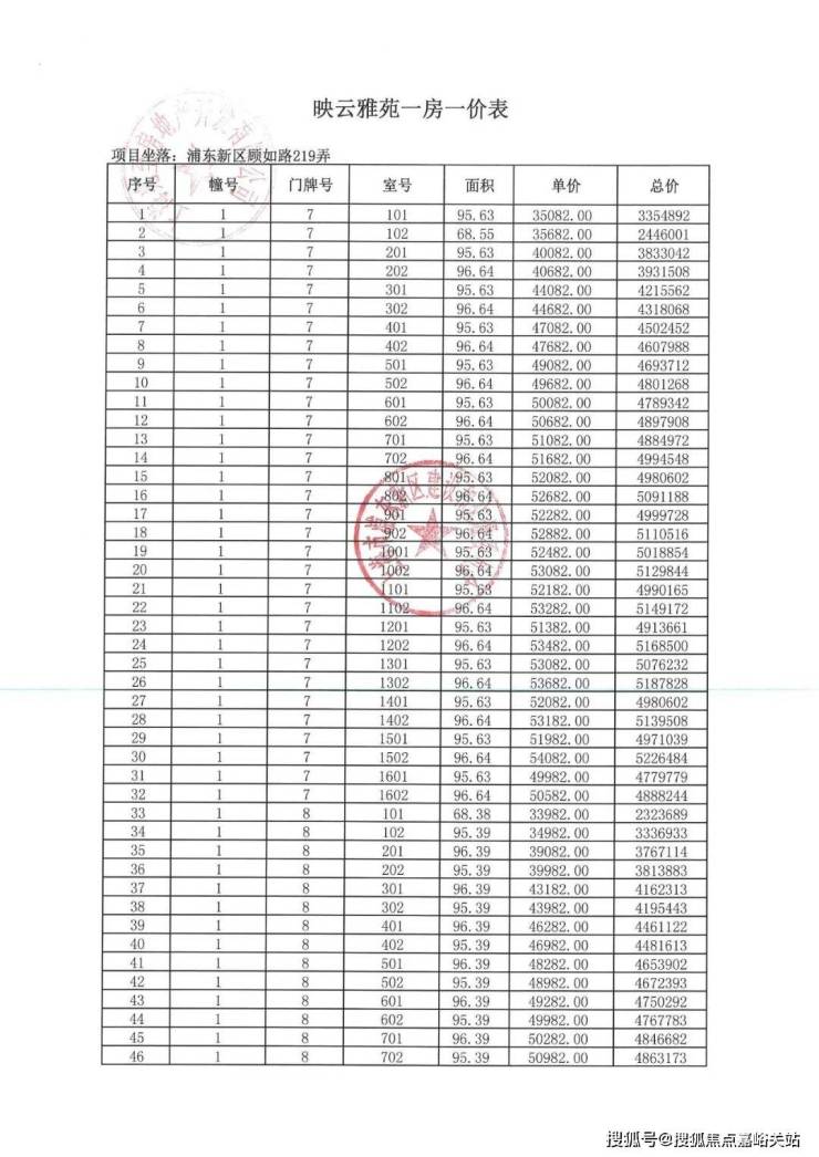 项目一房一价表▼