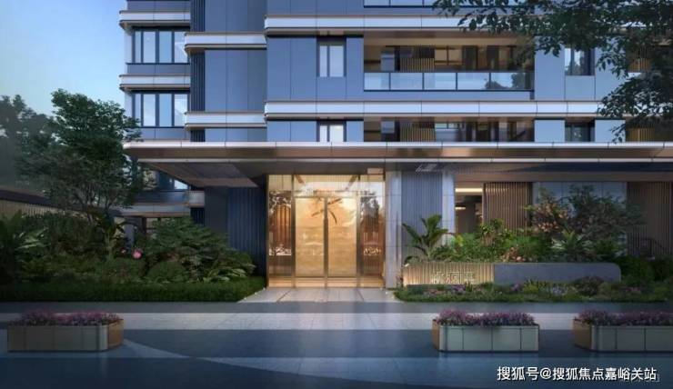 桃源里不仅远眺颜值出众,每一处细节都体现了精致感与仪式感,一个800w级的新盘,竟然还为入户单元设计了 昭示性景墙+专属入户铺装 , 而不是简单地把楼栋号安装在门洞之上