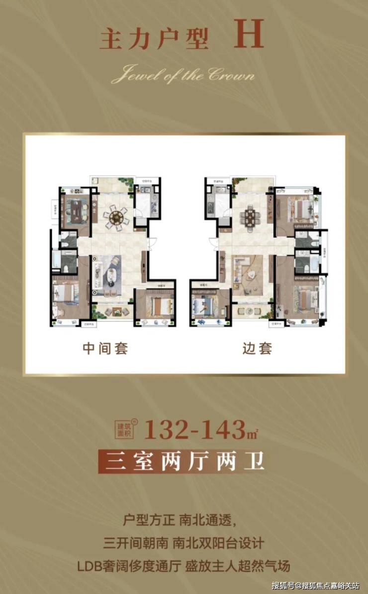 132㎡3房2厅2卫:三开间朝南,南北双阳台,主卧套房带飘窗,刚需改善首选,总价770万起;