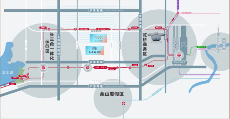 直线距离约800米示范区线(在建) 大虹桥宝藏通勤楼盘