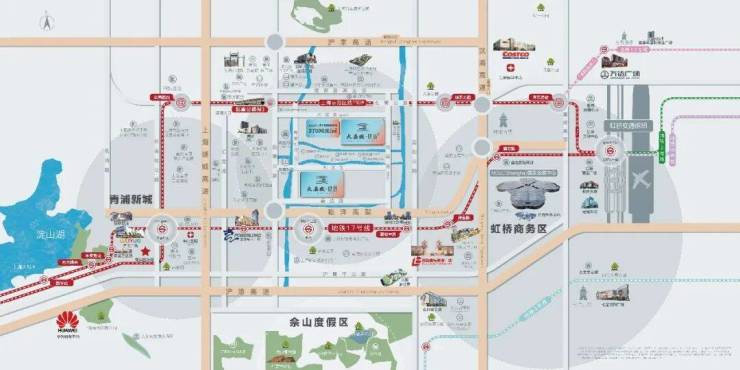 17号线6站直达虹桥枢纽,无缝换乘2号线、10号线,快速通达中山公园、静安寺、陆家嘴等传统市区核心商圈。此外,17号线沿线每一站均为TOD商业中心,虹桥天地、龙湖天街、蟠龙天地等约220万方商业体量环绕,为业主提供吃喝玩乐购的一站式都会生活体验。