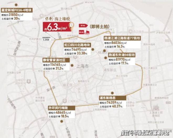 5月14日上海市土地交易市场发布宝山区W12-1301单元90-01、91-01、92-01、93-01、94-01、87-01地块挂牌,地块起拍价81亿,起拍价对应的可售商品住宅整盘微利售价6.3万/㎡,若以当前市场30%溢价率来算,对应的可售商品住宅整盘微利售价将直冲7.9万以上/㎡中环旁大四房总价更是轻松破千万!