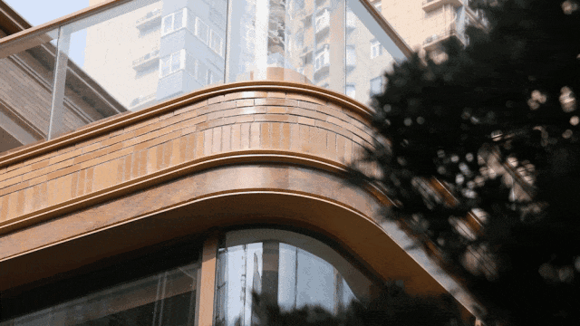 材质的选择上,越秀·外滩樾体现了极高的专业性和创新精神。设计承袭建筑原址的经典海派风貌艺术,以红色陶面砖与金色釉面砖为立面主材,兼具厚重与温润质感,结合多种砌筑手法如斜砌、梅花丁、弧形以及镂空等,增加建筑物的视觉层次感。在设计阶段预先对砖的排布和尺寸进行精确计算,以确保整体风格的和谐。经过多次试烧和调整以达到理想的成色。