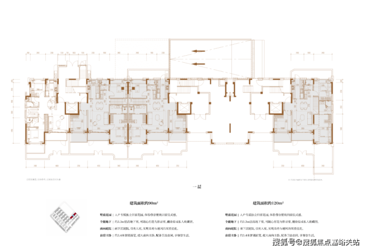 建面约120㎡3房2厅2卫/90㎡2房2厅2卫(一层下叠)