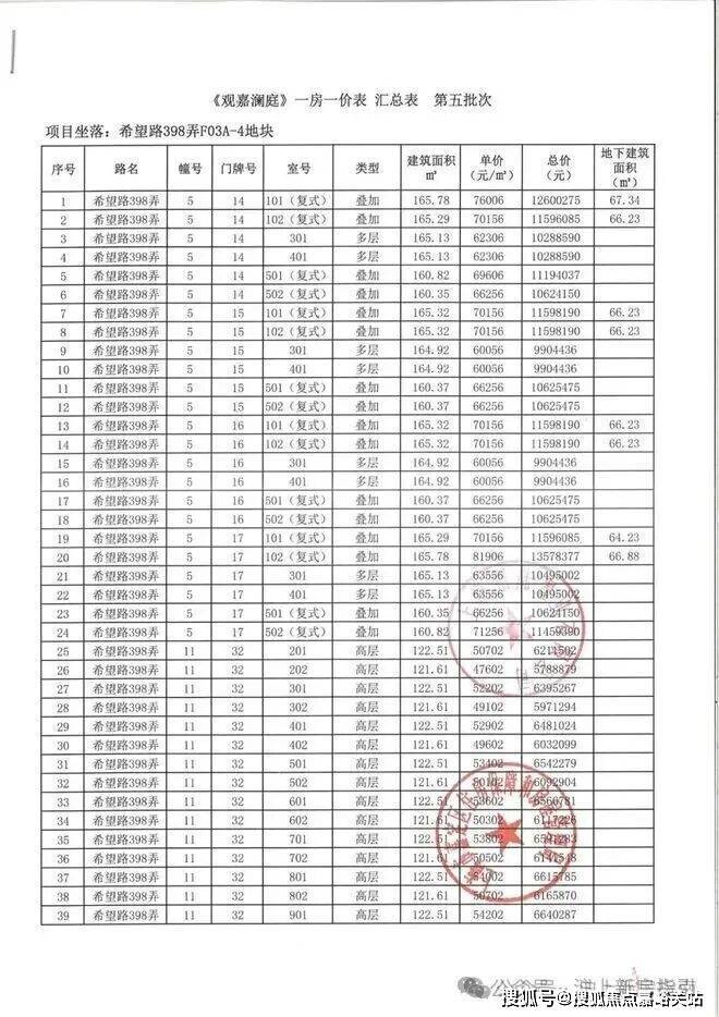 一房一价表