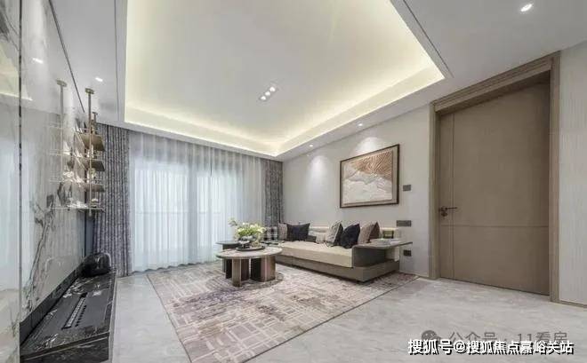 金茂定制壁布或墙纸交标结合 芬迪白岩板客厅背景墙,地面采用马可波罗(或同等品牌)大板砖,以定制设计感提升空间立体感。