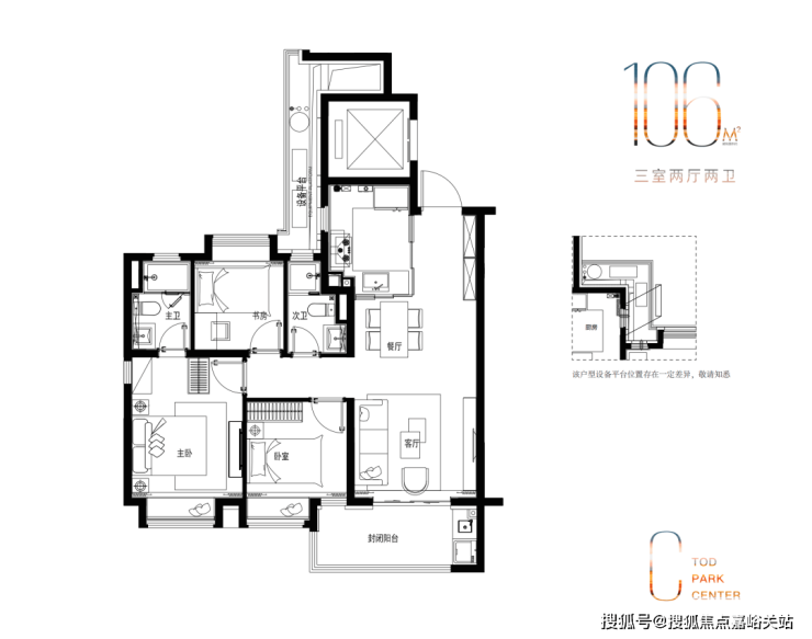 ①建面约106㎡新品3房:无连廊,高得房率!