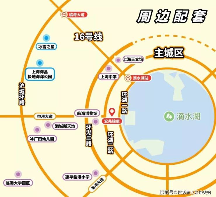 宏兆锦庭与 海昌海洋公园、冰雪之星 直线距离不超过3公里;与 上海天文馆 直线距离 约1.5公里, 与 中国航海博物馆,滴水湖 近在咫尺,步行可达。
