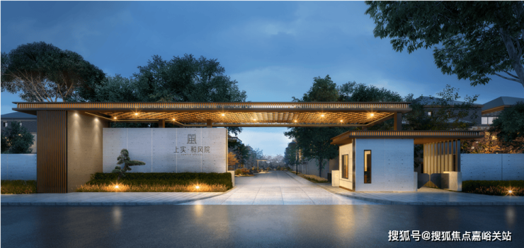 【上实·和风院】建筑外观是 新中式格调,以黑色面瓦为黛顶,整体线条简洁明快。