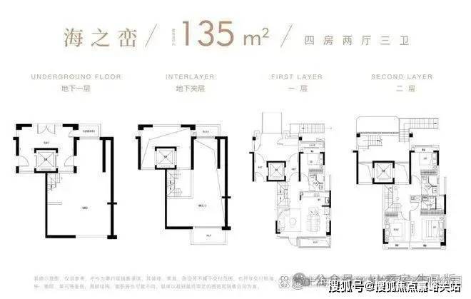 户型135平米,4房2厅3卫,联排别墅