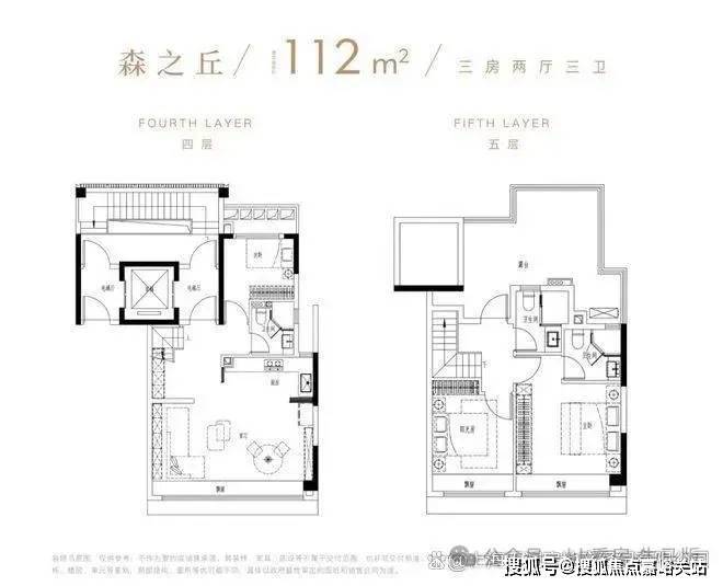 户型112平米,3房2厅3卫,联排别墅