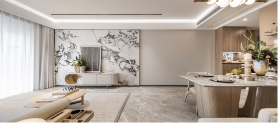 第三个亮点, 是客餐厅一体化设计, 外连阔景阳台,采光非常好,空气更加流通,同时增进了家人间的互动。