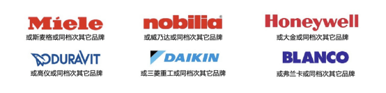 全屋臻选美诺、杜拉维特、高仪、霍尼韦尔、大金(或同档次其它品牌)等全球奢装品牌,营造出更精致、更智能的生活场景;同时配置三玻两腔隔音降噪玻璃隔绝市心喧嚣;新风系统、地暖、中央空调营造四季如春的室内小气候,让业主生活生态健康。
