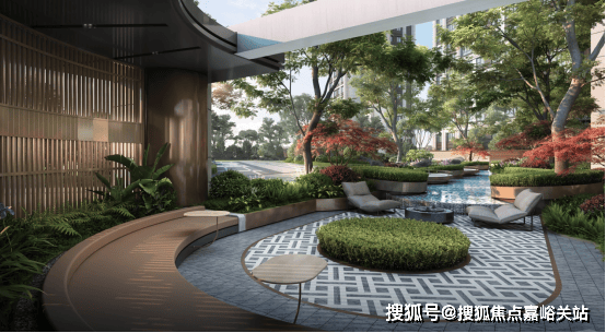 社区中央景观位的林下会客厅,糅合精工材质和自然光影,邻里社交假日休憩,让人在此流连时光。