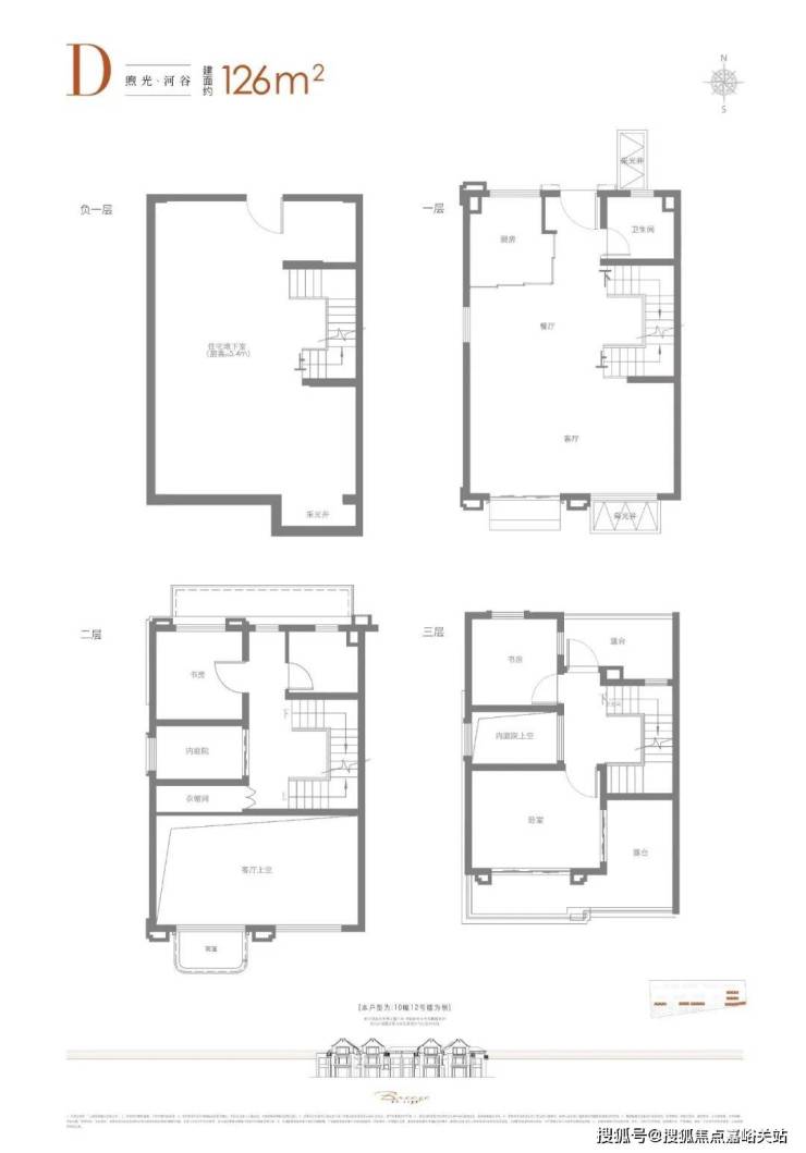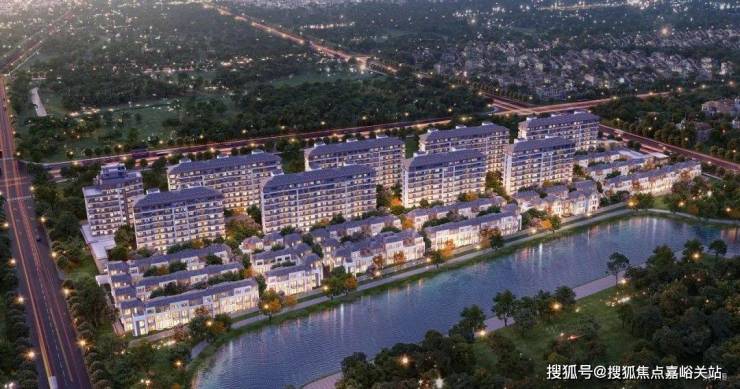 项目容积率仅约1.5,由3层联排别墅+10层墅境平层组成,整体环河排布。