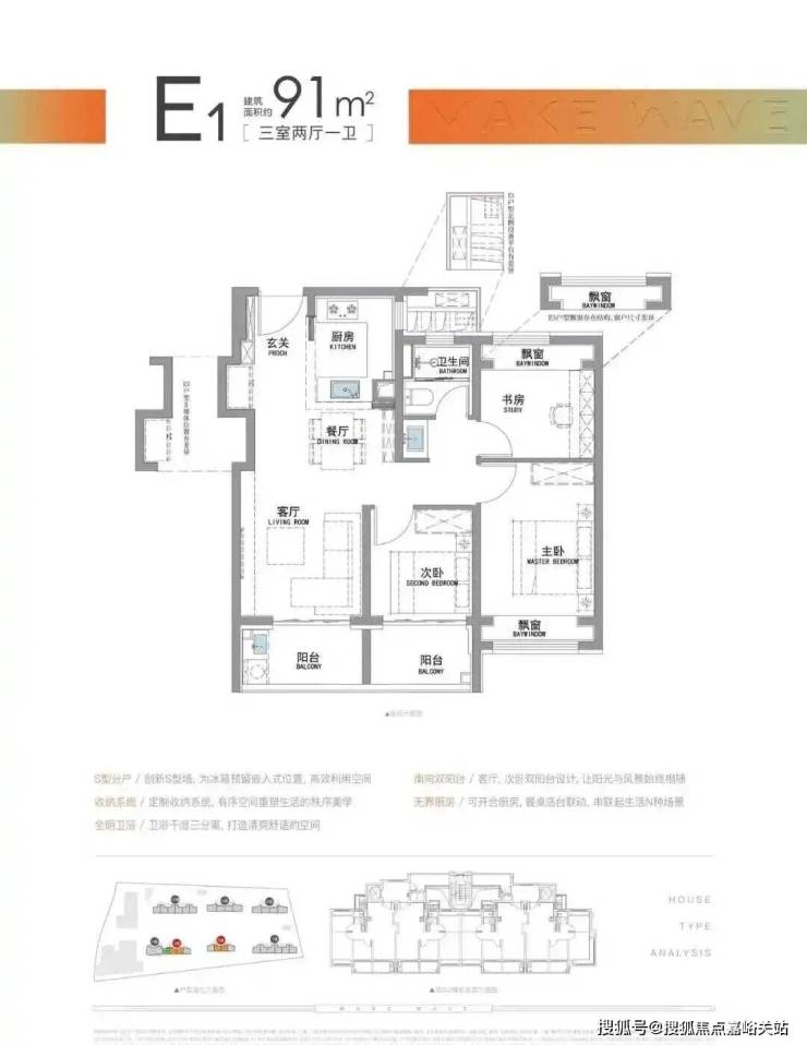 “南向双阳台+南北双飘窗”,构筑真3房户型!