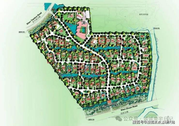 中凯曼荼园内有一条宽6米,贯穿南北的景观大道,将整座园区划分为东西两个区域,其景观营造的精髓在于植被的多样性和层次感。