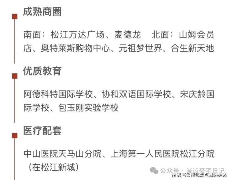 医疗:松江第一人民医院,松江妇幼保健院,德达医院、佘山镇社区卫生服务中心