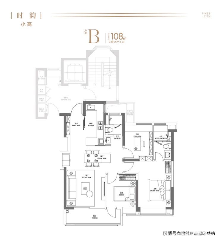 建面约108㎡3房(小高)实用且更有温度的“家庭生活中心”