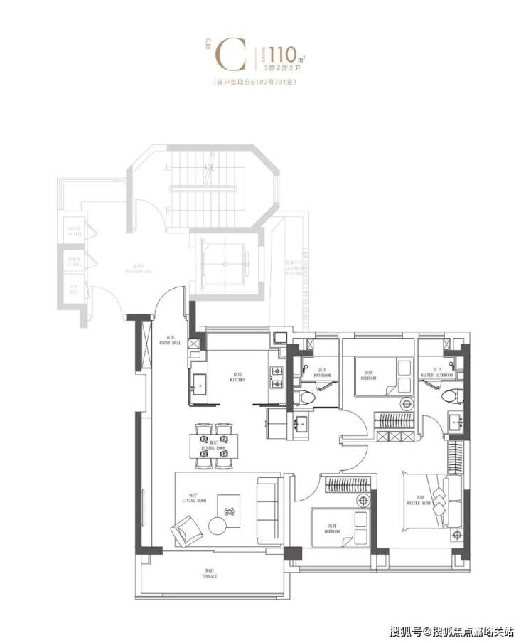 建面约110㎡3房2卫(小高层)▼