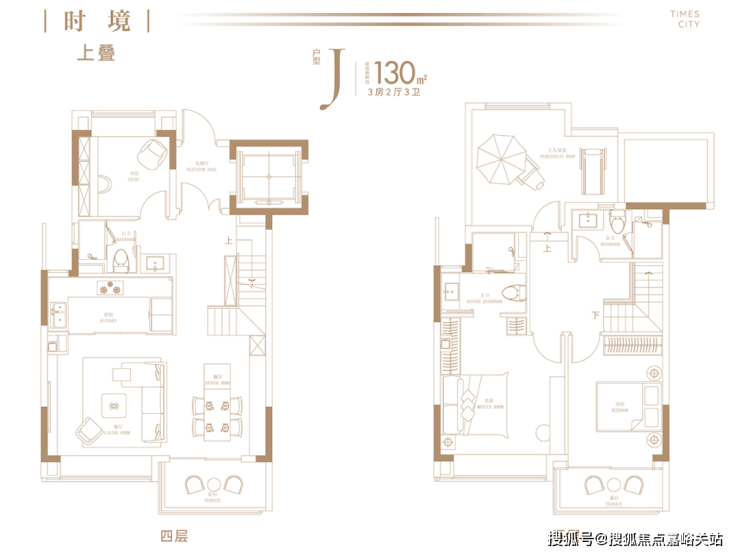 建面约130㎡-170 ㎡叠墅产品南北入户、专属电梯厅、超级横厅、超强收纳