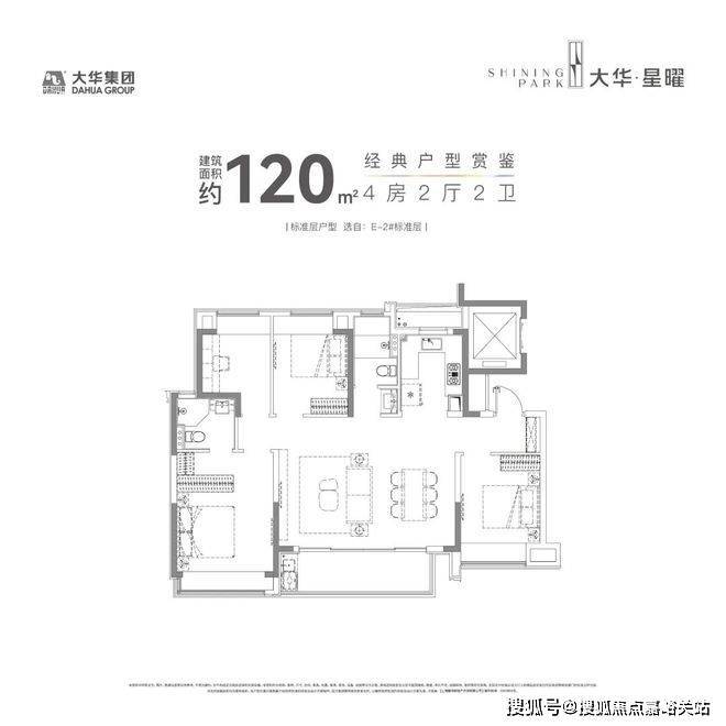 120㎡四房:真四房设计,大横厅 + 南向面宽,总价约 555 万起。