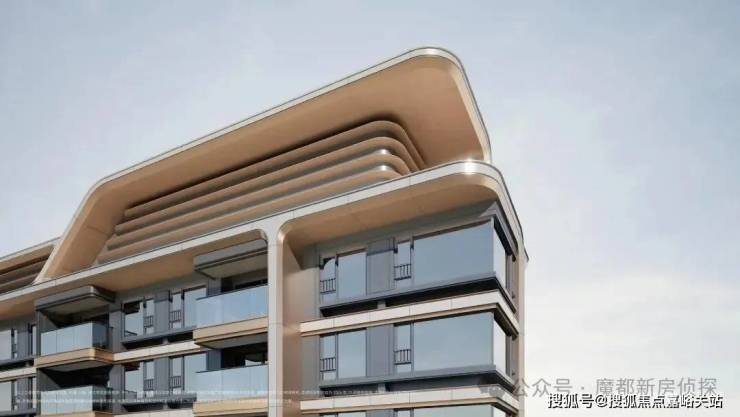 项目采用 鎏金塔冠造型 ,灵感来源于国际邮轮港的曲线,流光美学的外立面,既有辨识度又有质感,是未来业主身份的象征。阳光倾泻而下,在不同光影与环境下,让家成为一件艺术品。