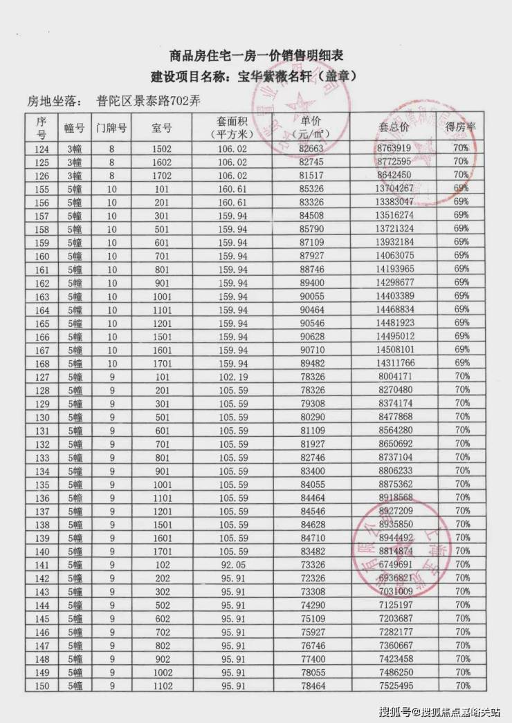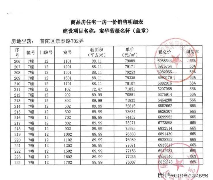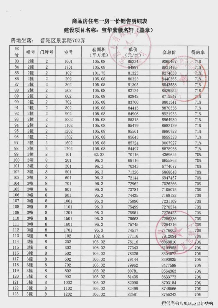 一房一价表如下: