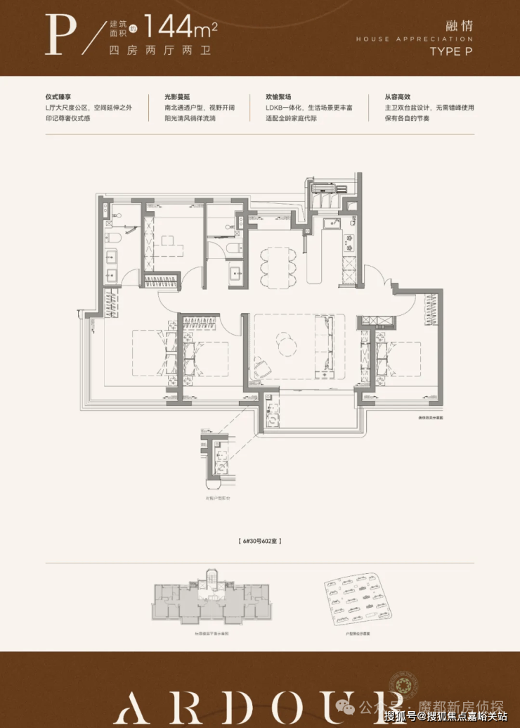 再来看下建面约144㎡4房, 部分装标是有所升级的。