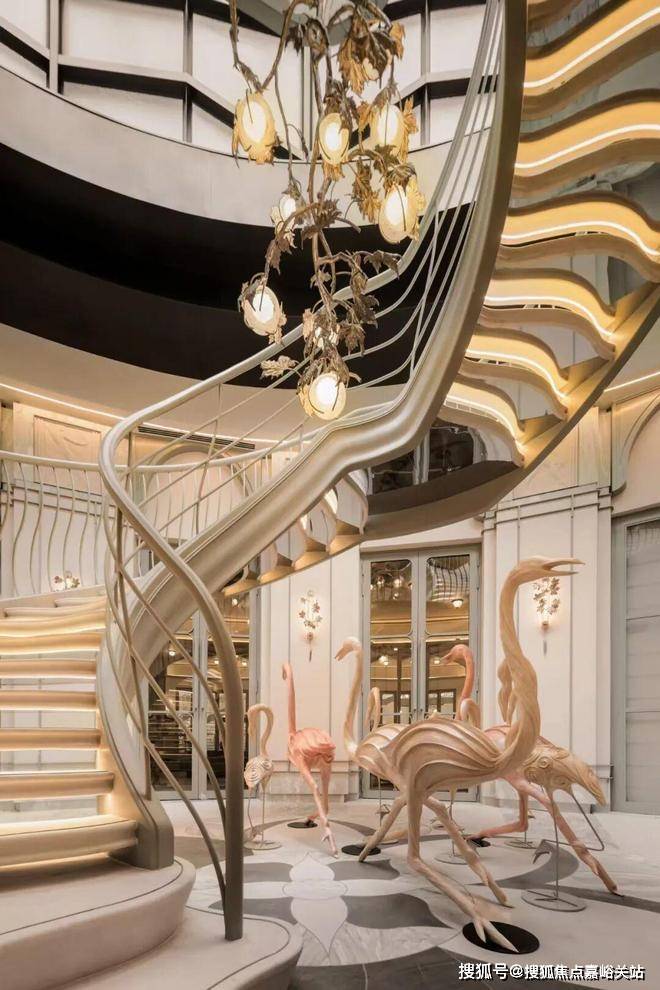 值得一提的还有,在仅70套作品的社区,项目居然还原了邵洵美的“花厅”,将百年历史文脉与新时代海派特质融合,结合复古式旋转楼梯设计,从层次感、艺术感、观赏性等维度打造出一个了 既复古又摩登的会所。
