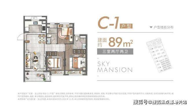 9-10层洋房:建面约89㎡(三房两厅两卫)