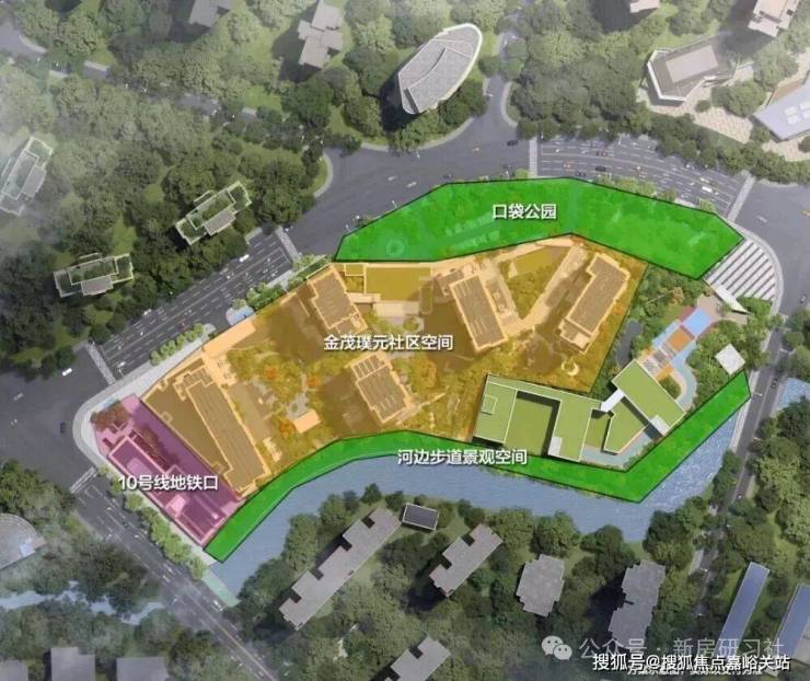 因为这个地块的四周有河道,有地铁,有商业。在金茂的设计里,这个底盘周围的一些配套都是和社区相连,被精心打磨过的。