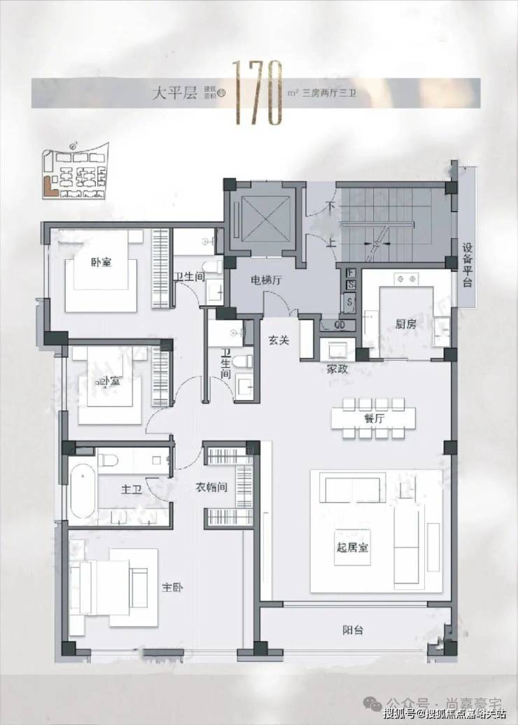 洋房产品(170~340㎡):5000万+总价区间,340㎡主力户型同样配备双入户门、保姆房与家政空间,三间卧室全套房设计,满足改善型家庭的品质追求,为圈层入门提供稀缺选择。