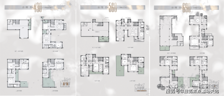 别墅户型(403~690㎡):均采用四房四厅五卫的奢华配置,全套房设计保障每位家庭成员的隐私与舒适。独立玄关入户,南北通透的公共空间兼具社交功能与家庭互动需求;书房配备独立卫生间与储物间,彰显儒雅格调;专属保姆房与家政空间分离设置,双入户门设计强化礼仪秩序,细节处尽显世家风范。