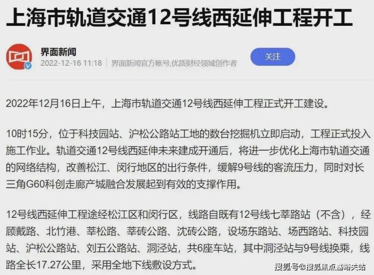 目前12号线西延伸正在加速推进,预计2027年底开通试运营。12号线西延伸在松江境内从G60云廊沿沈砖公路,东西向穿过洞泾,设沪松公路和刘五公路设站,在洞泾站与9号线交汇。☑️☑️保利西郊和煦售楼处电话:400-1183-605☑️☑️