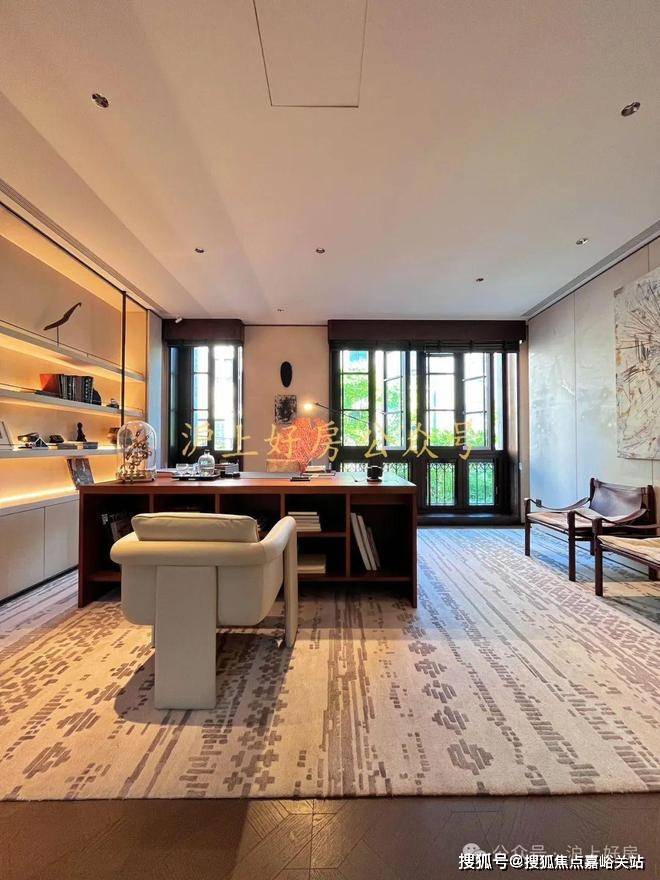 整体一层空间的东南方向,上海弘安里官方售楼处电话:400-118-5086√√√【已认证】样板间设计为了茶室,配合西向落地玻璃窗,同样正对庭院。