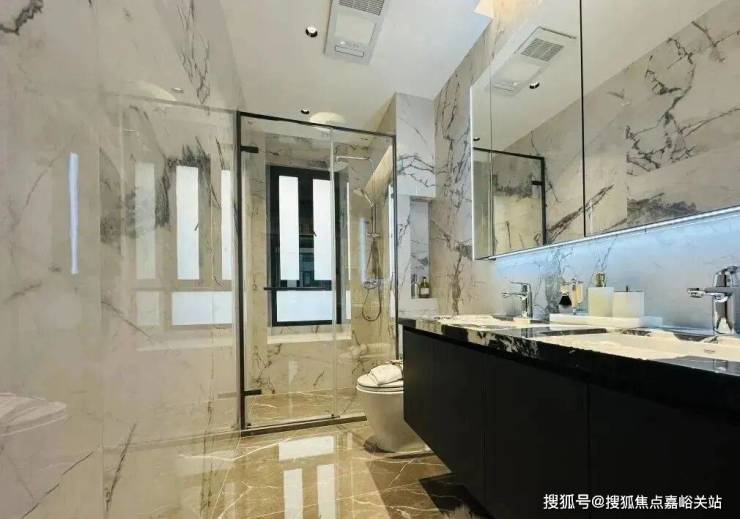 项目打造新中式立面风格,别墅1-3层、洋房1-2层采用来自巴西的维多利亚白天然石材干挂,营造高级、大气的建筑气质。
