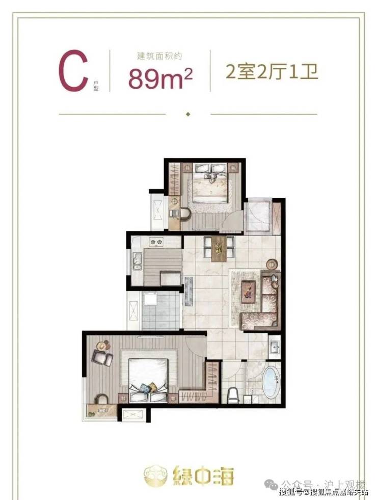 建面约87-89㎡2房2厅1卫