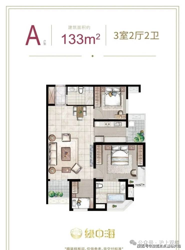 建面约133㎡3房2厅2卫