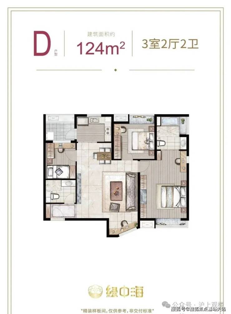 建面约124㎡3房2厅2卫