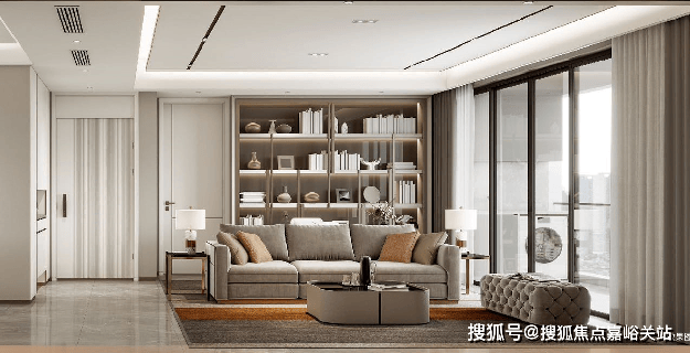 项目为精装交付,选用日立中央空调、菲斯曼地暖、方太厨具、欧派橱柜、科勒洁具等中高端品牌。样板间实拍客厅和主卧标配悬浮吊顶、无主灯设计,背景墙采用皮革和铝合金拼接,卫生间洗手池下设储物柜,充分利用空间。