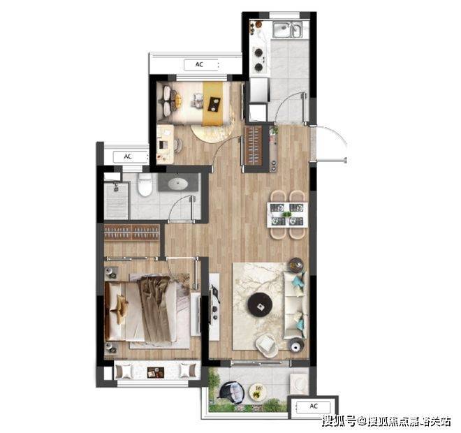 建面约74㎡户型样板间实拍