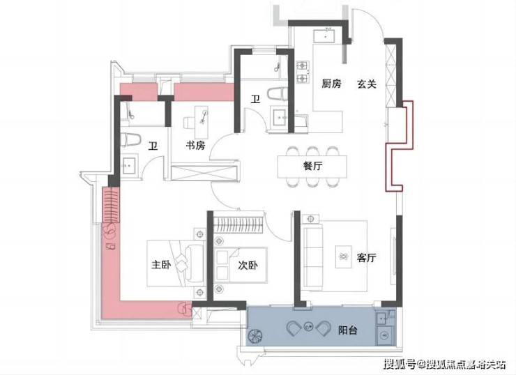 我觉得吧,超大餐厅+超大主卧,这个连廊中间户型有点优秀,具体点评如下。
