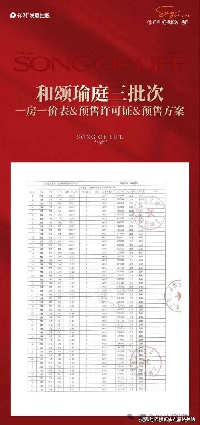 最新消息,一房一价表发布!青浦重固「保利虹桥和颂·西岸」三期明天开始认购!推出建面约91-140㎡三房四房,均价3.88万/㎡!