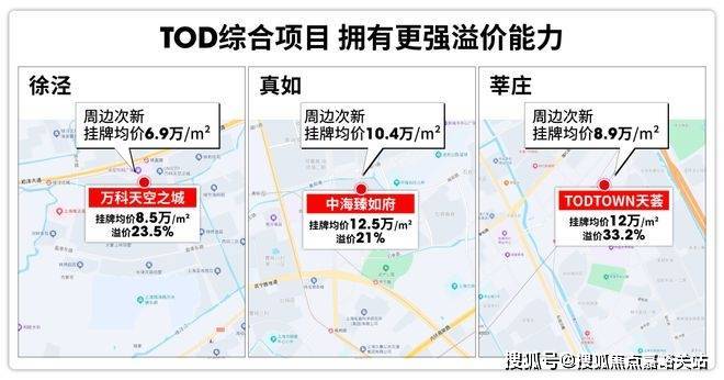 相比普通楼盘,TOD综合项目本身也有较强的溢价能力,莘庄天荟、万科天空之城等TOD项目都已给出有说服力的结论。