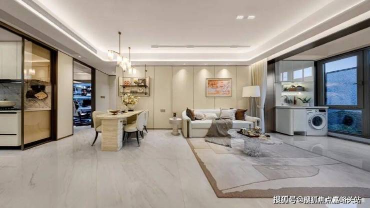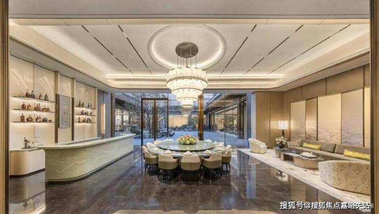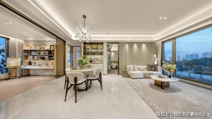最大约7.5米南向餐客厅 ,视野开阔,可赏宽幕园林; 约20~33㎡一体化餐客厅面积 ,形成宽奢的一体化家庭聚厅,亦从容承载圈层社交与亲子互动。