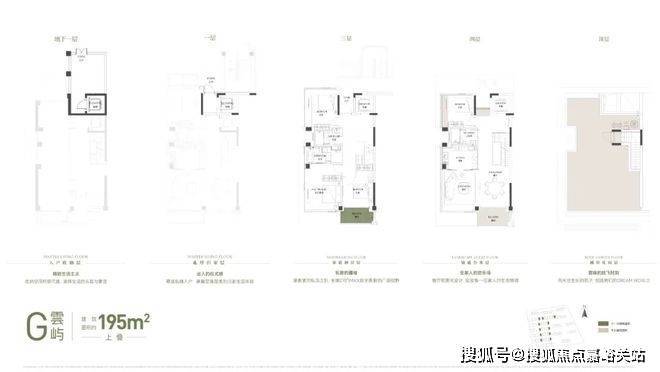 建面约215㎡上叠:屋面+庭院+地下室+露台+阳台的整体附赠空间约110㎡;