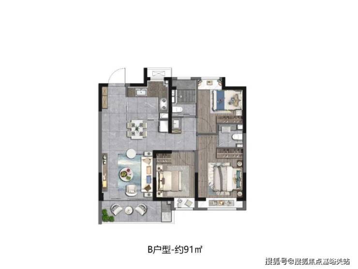 【建面约91㎡ 3房2厅2卫】